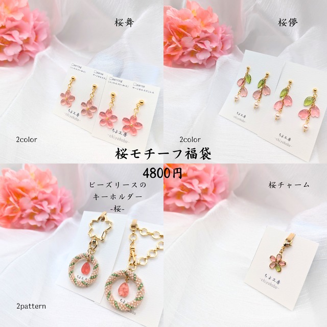 桜モチーフの4作品を福袋にしました! 通常5200円のところ、【4800円】にして販売します。 ゲリラ販売ですので早い者勝ちです!