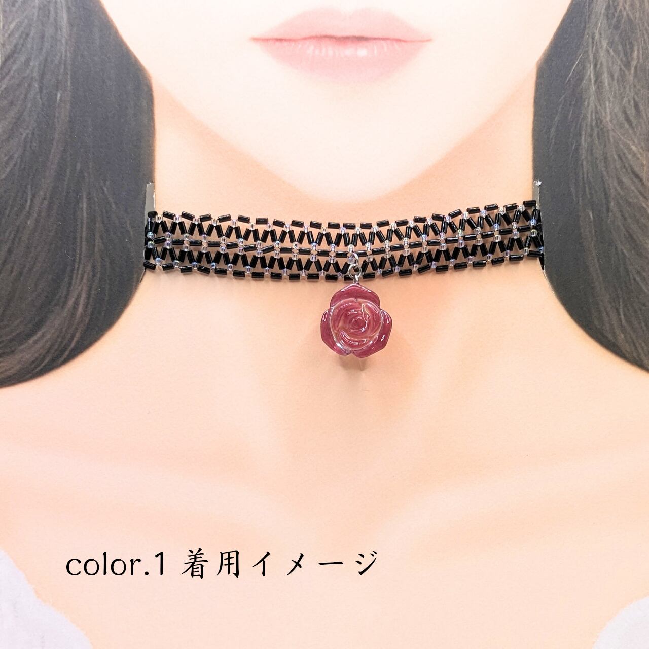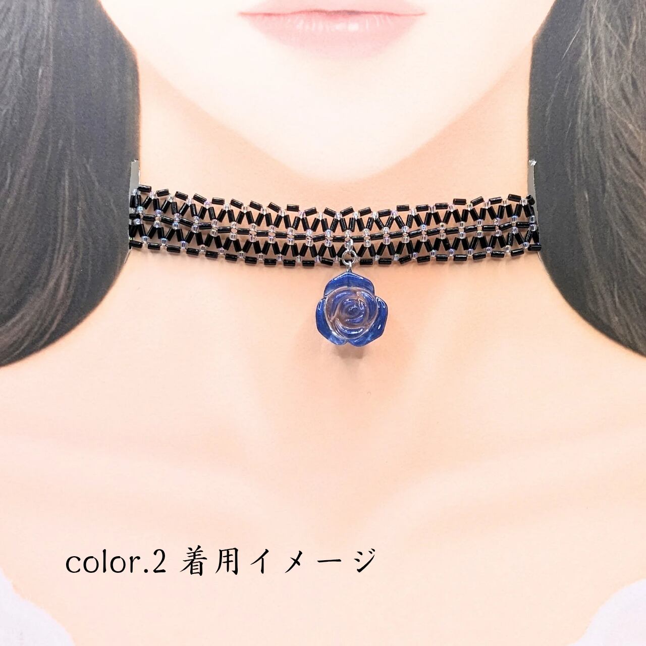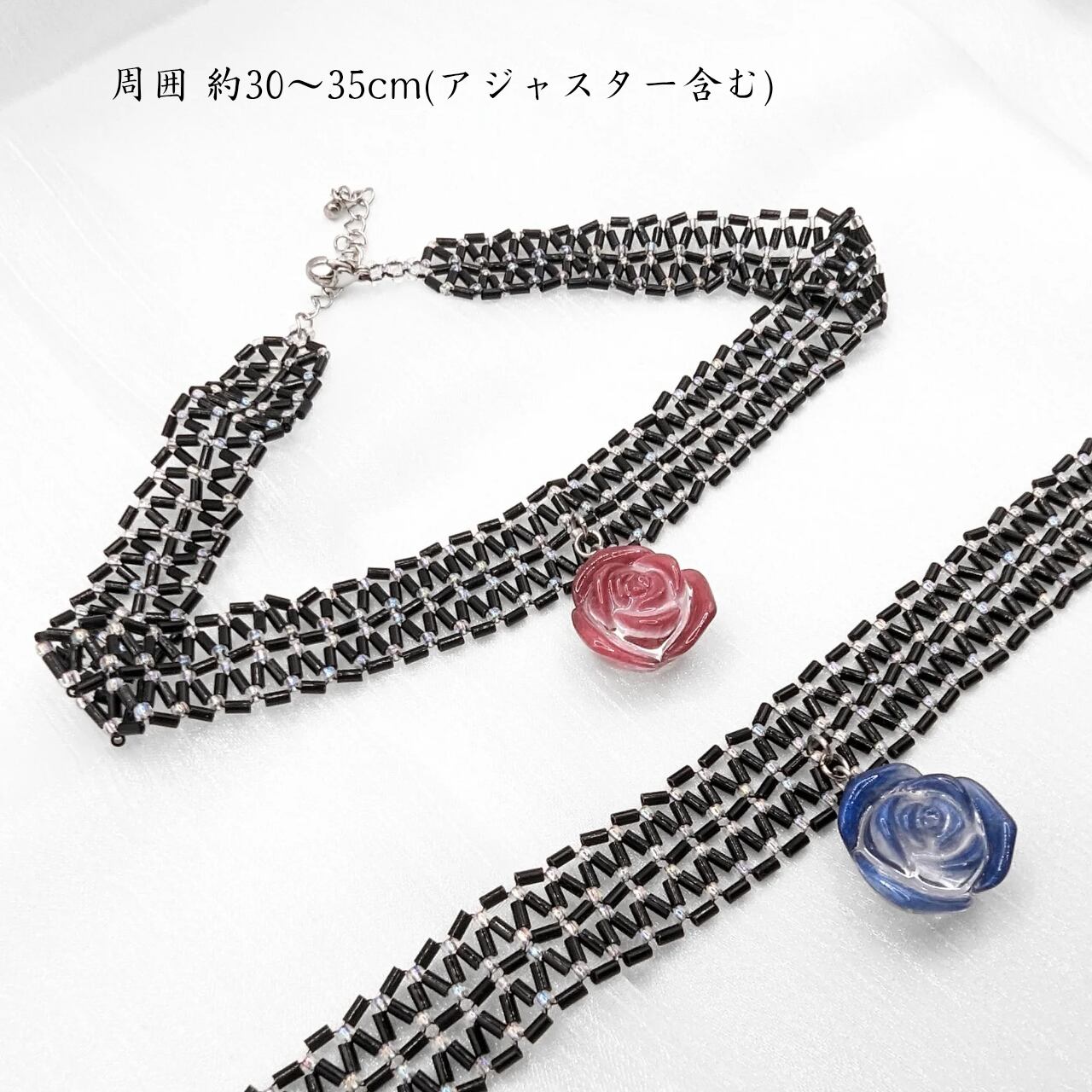 ※チョーカー部分はほんの少し伸縮性がありますが、引っ張りすぎると糸が切れてしまう可能性がありますのでお気をつけくださいませ。