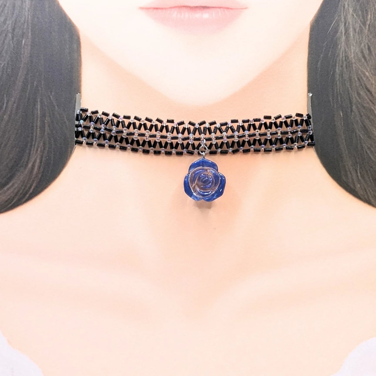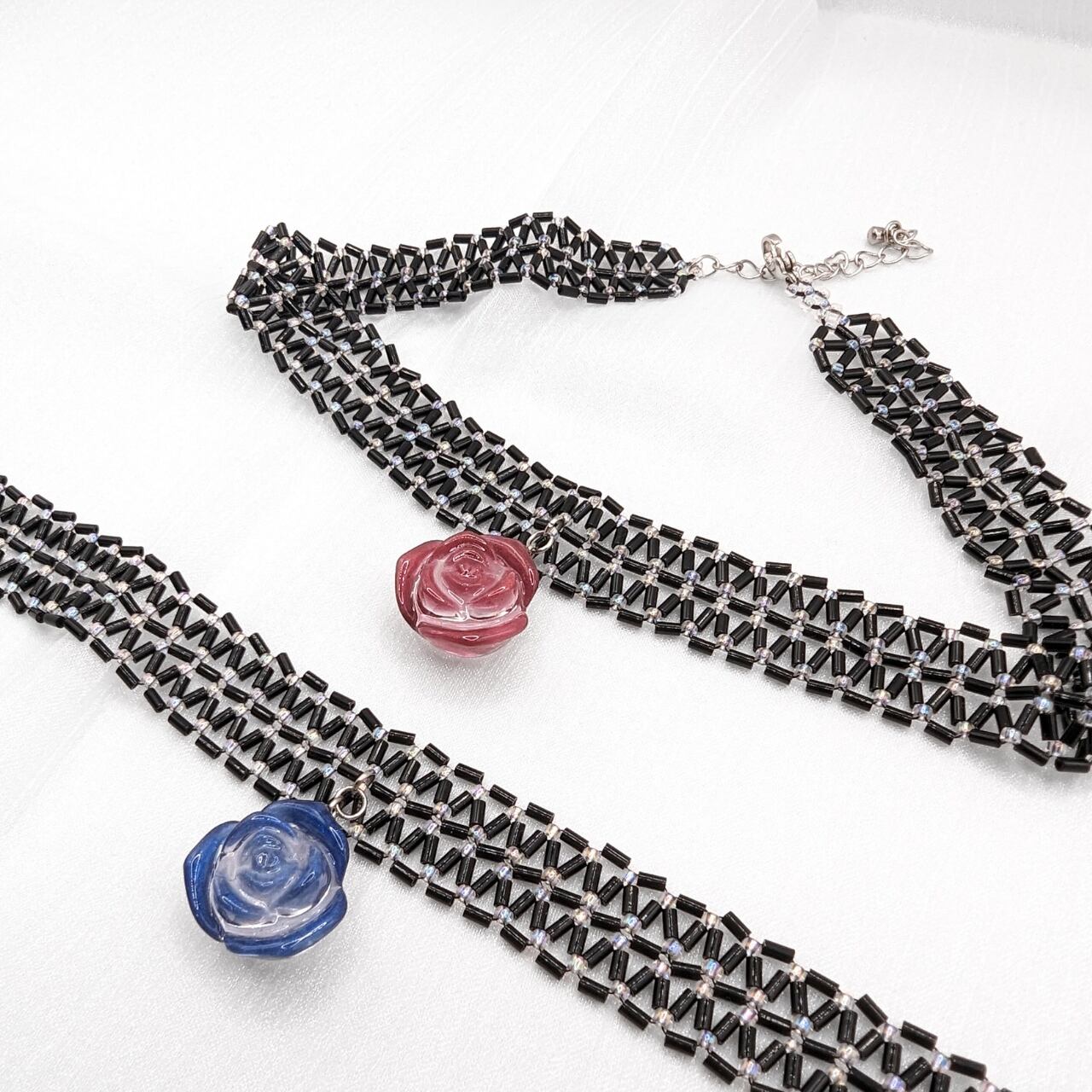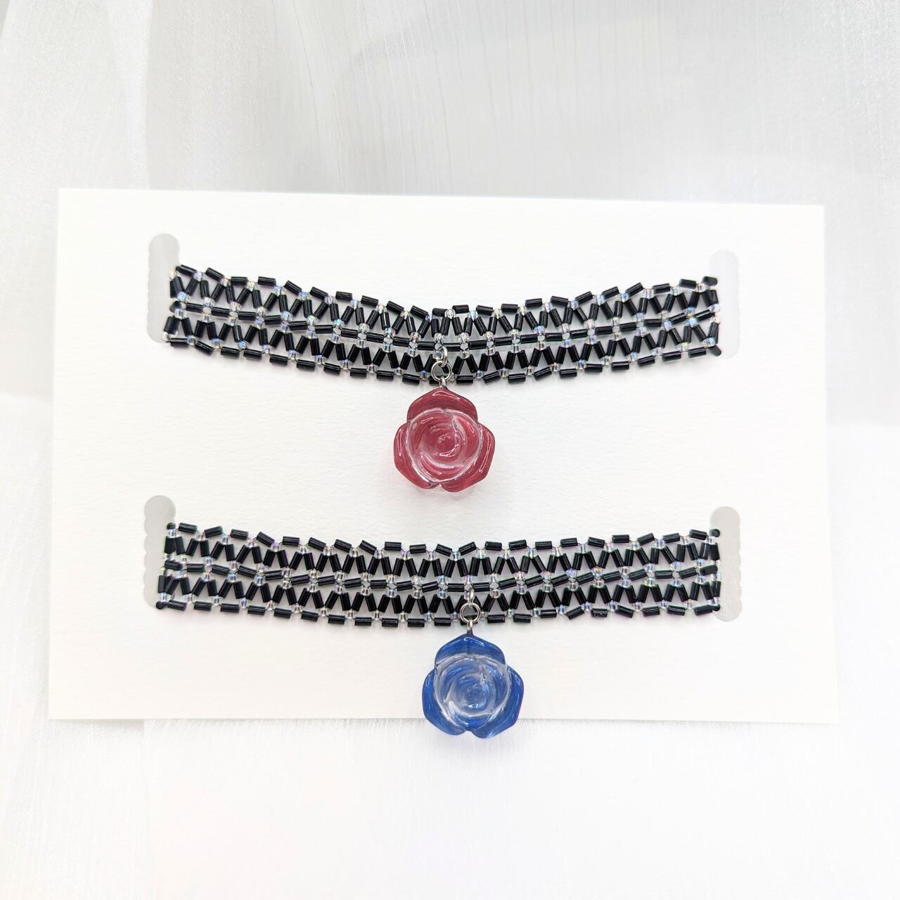※チョーカー部分はほんの少し伸縮性がありますが、引っ張りすぎると糸が切れてしまう可能性がありますのでお気をつけくださいませ。