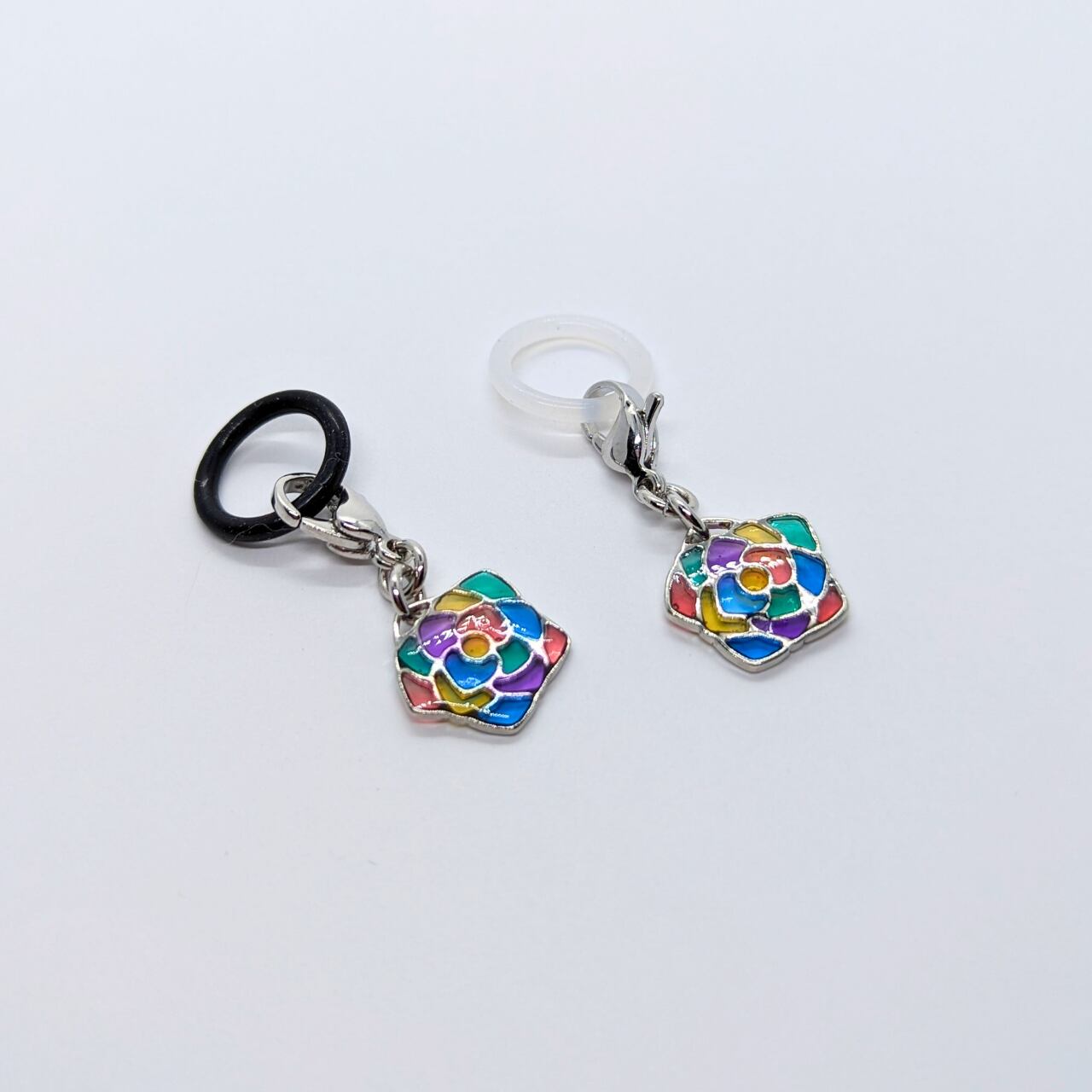 薔薇の空枠にカラフルなカラーのレジンを入れてステンドグラス風に仕上げてみました。