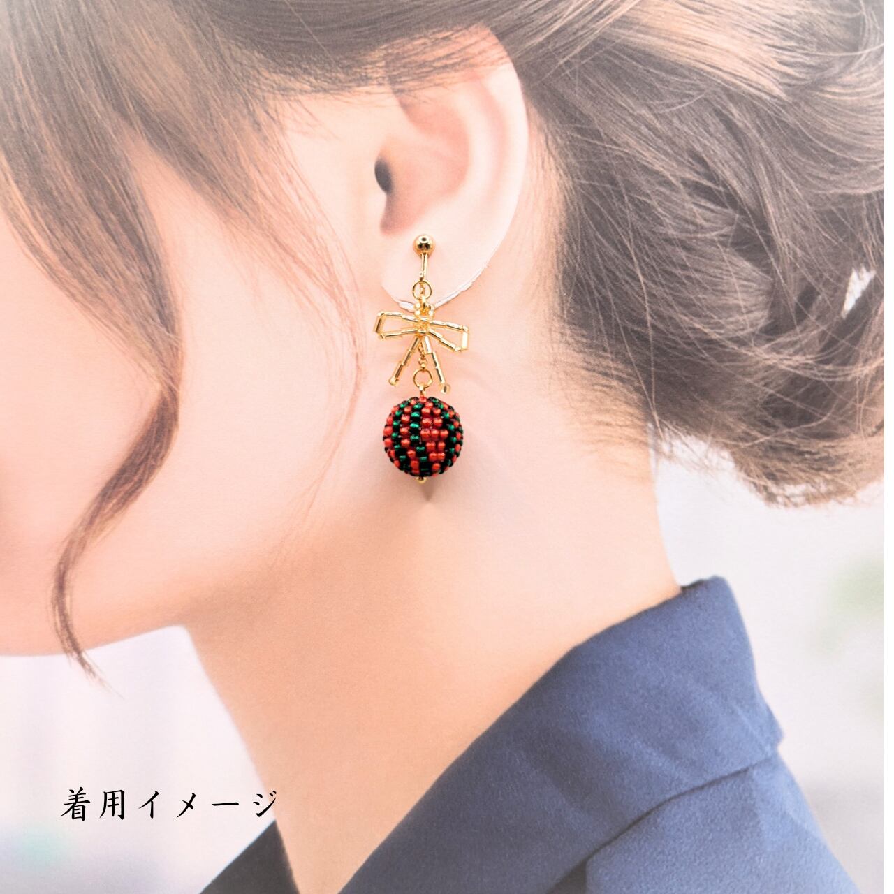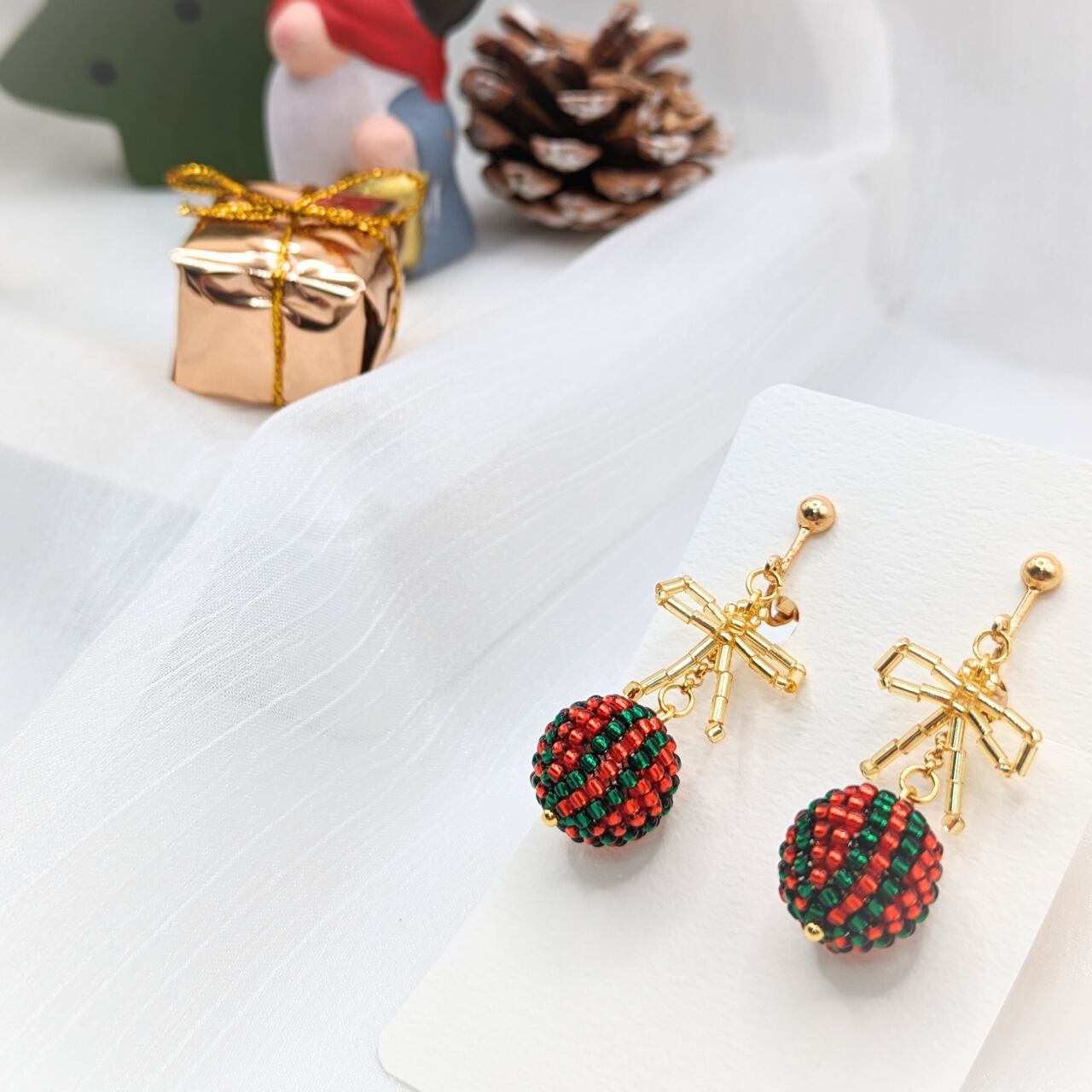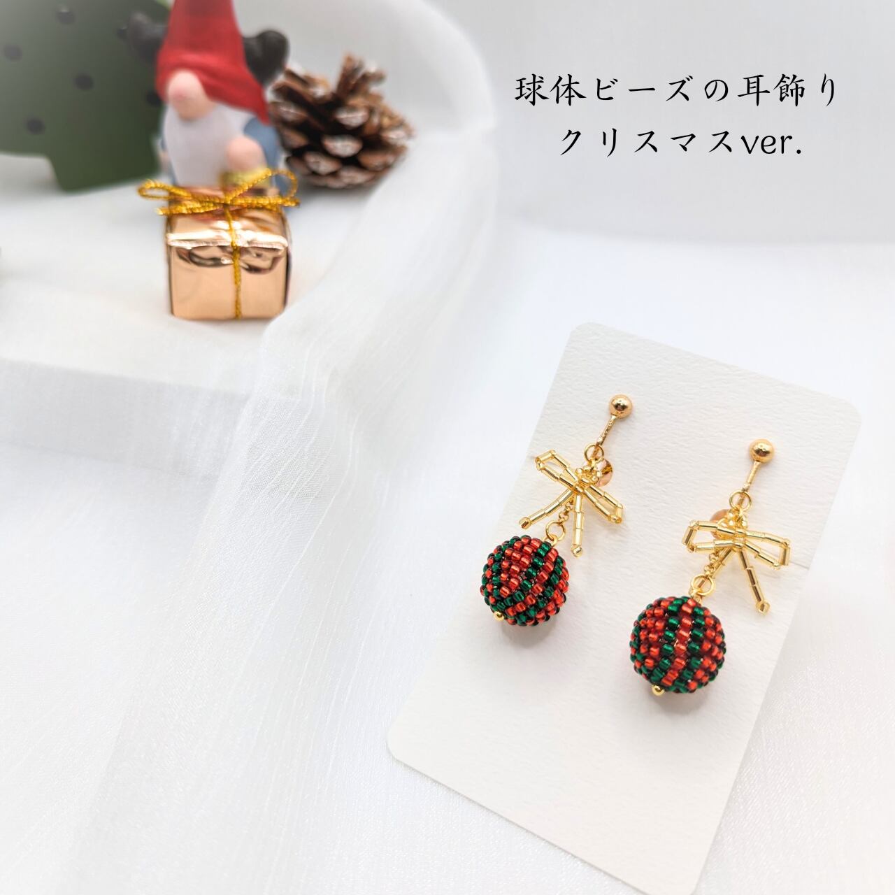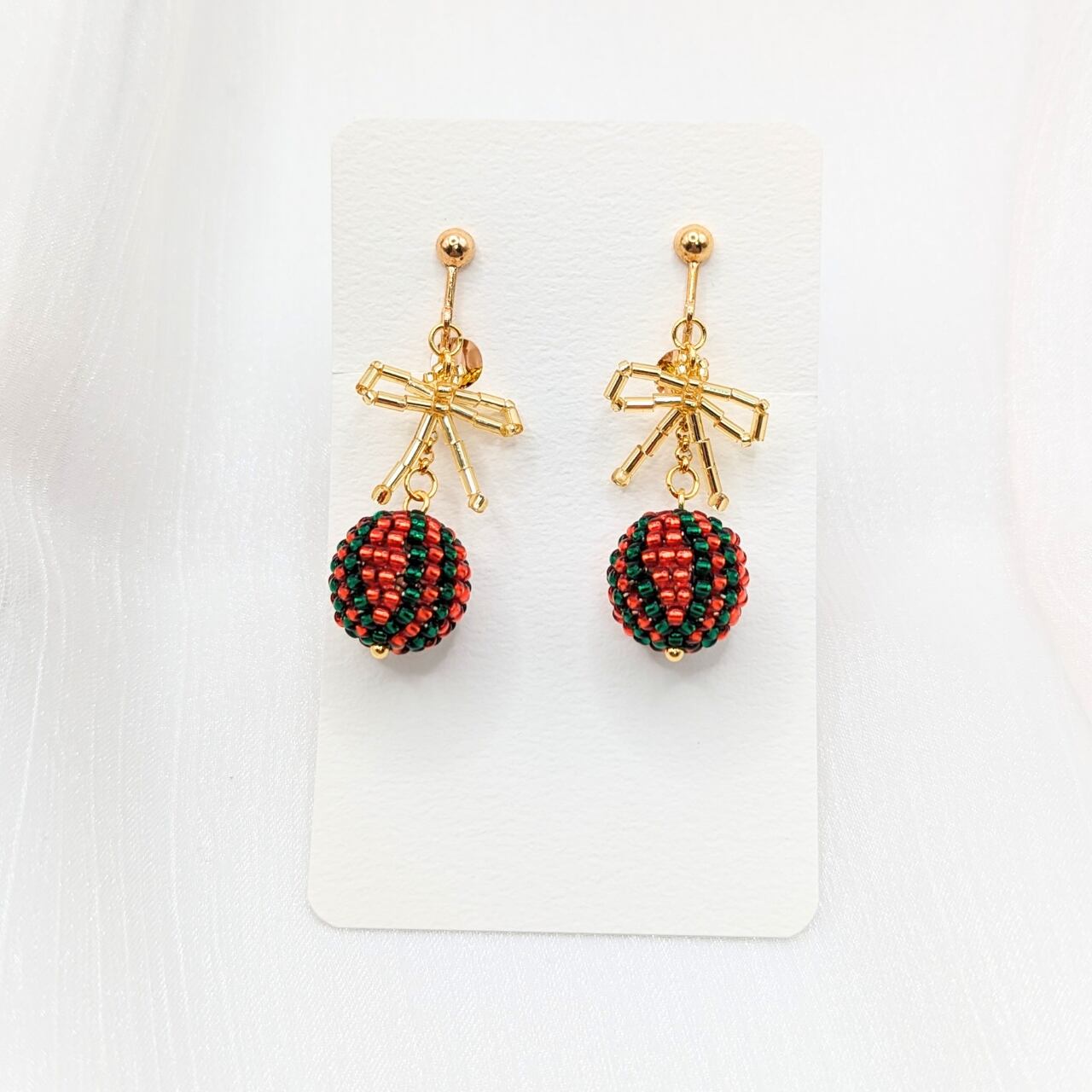 球体ビーズの耳飾り【クリスマスver.】