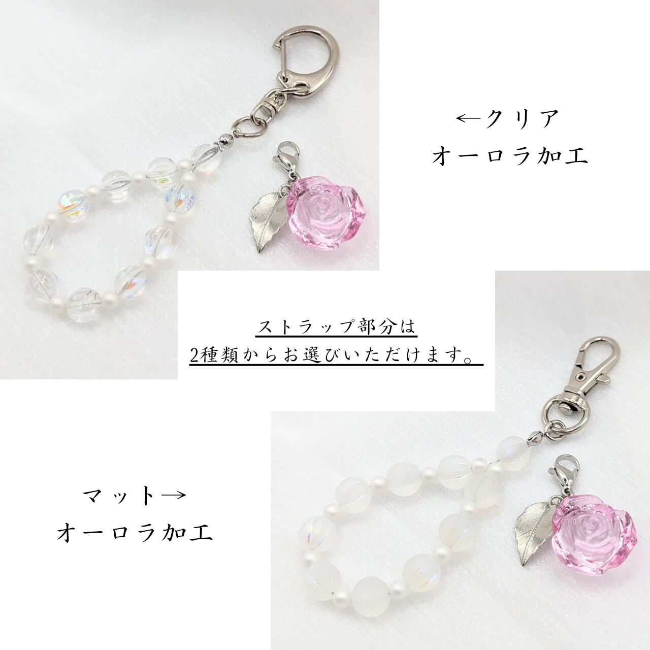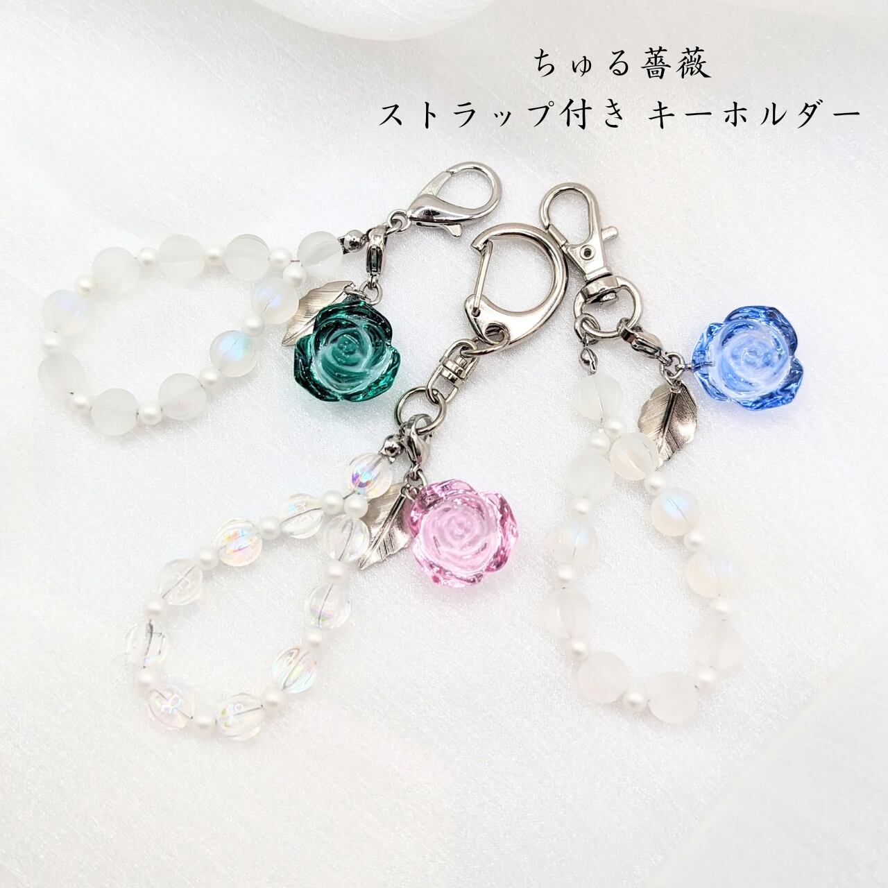 ちよ工房の代表作「ちゅる薔薇」にチェコビーズのストラップをつけてキーホルダーにしてみました!