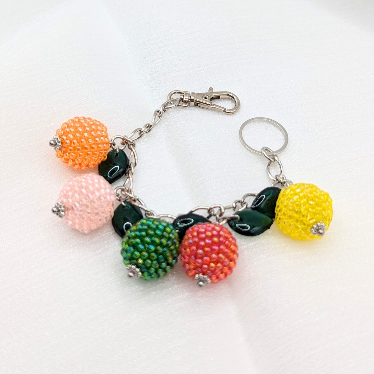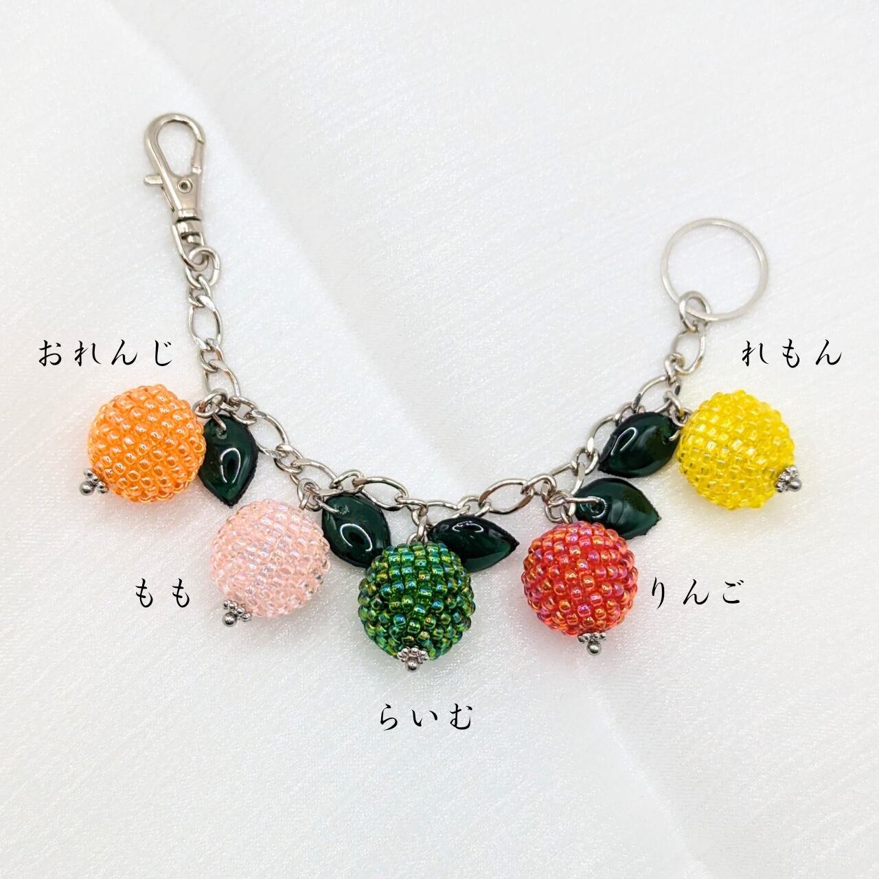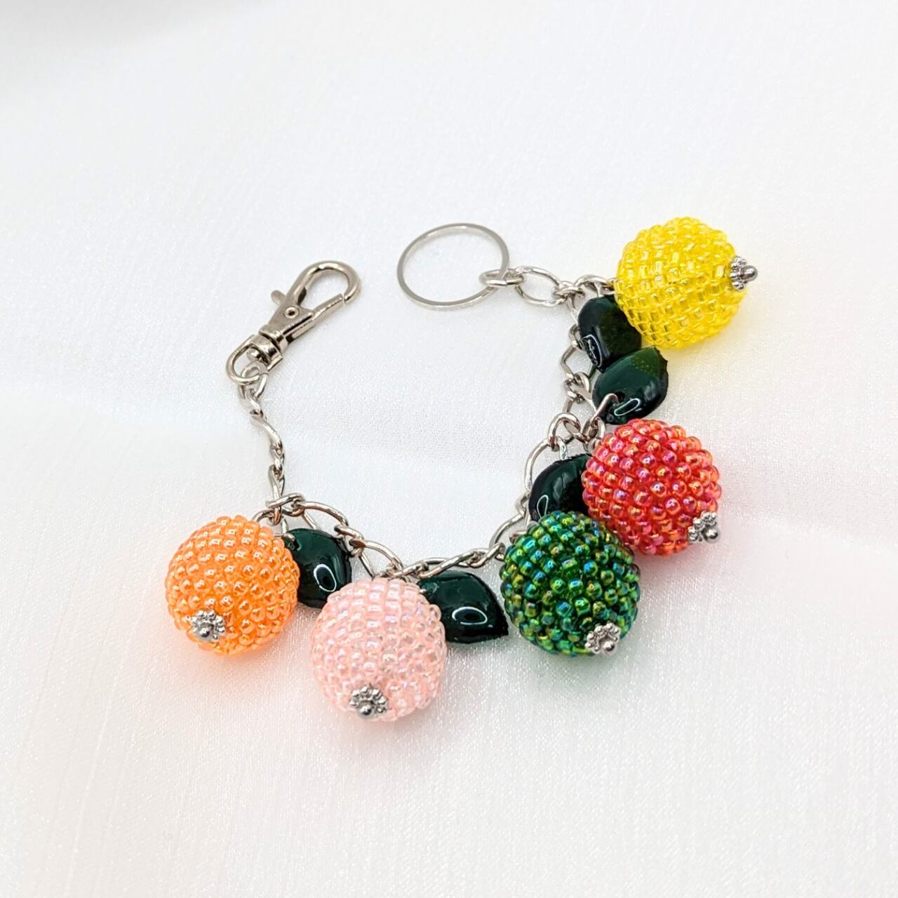 ビーズを球体に編み込んだコロンと可愛い食べ物モチーフが大集合!