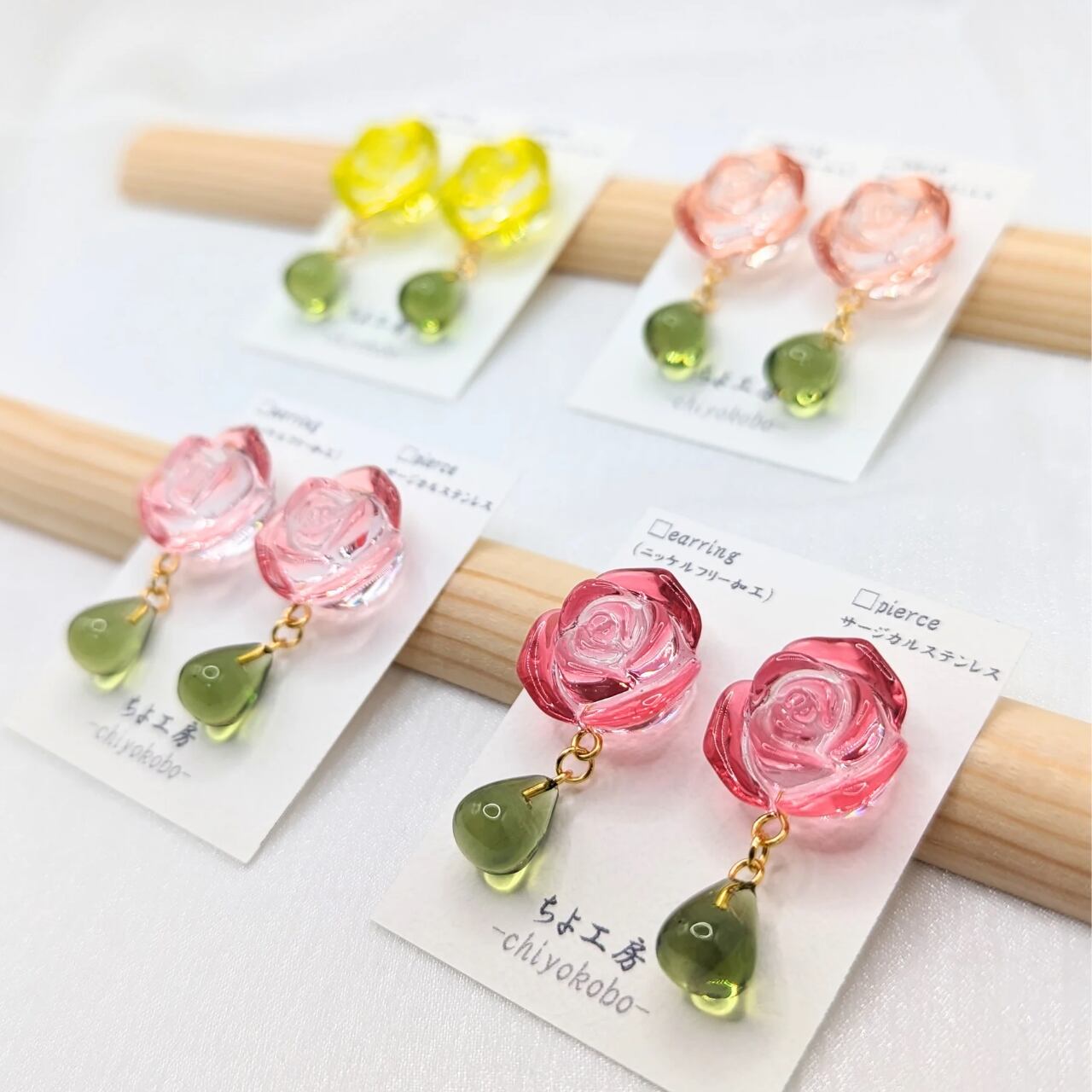 雨で濡れた葉が光に当たりキラキラと輝き揺れるイメージで製作しました。